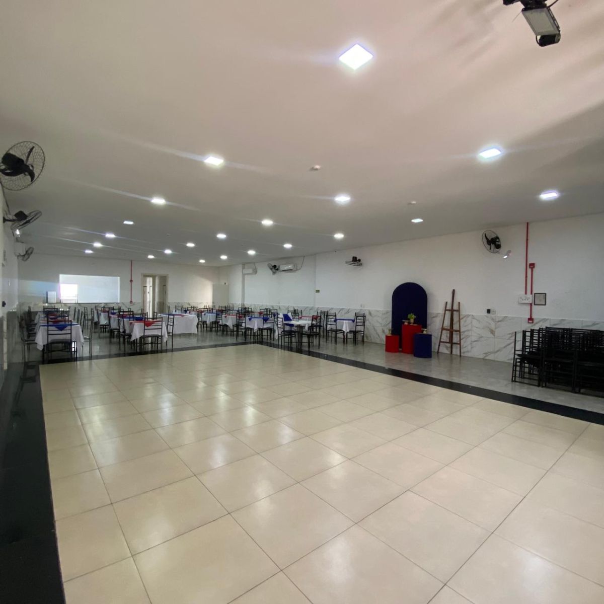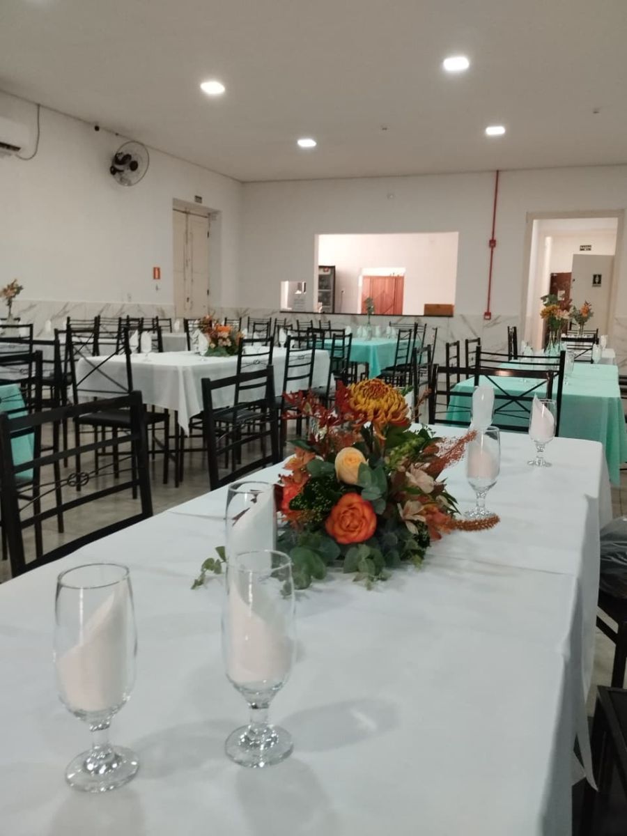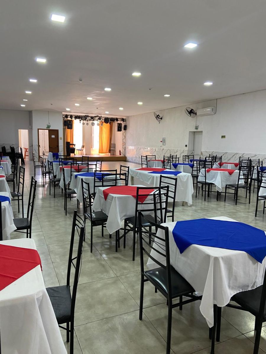 palco para banda, climatização, cozinha equipada, Wi-Fi, camarote simples, churrasqueiras e espaço de bar. Perfeito para aniversários, formaturas, casamentos e confraternizações!