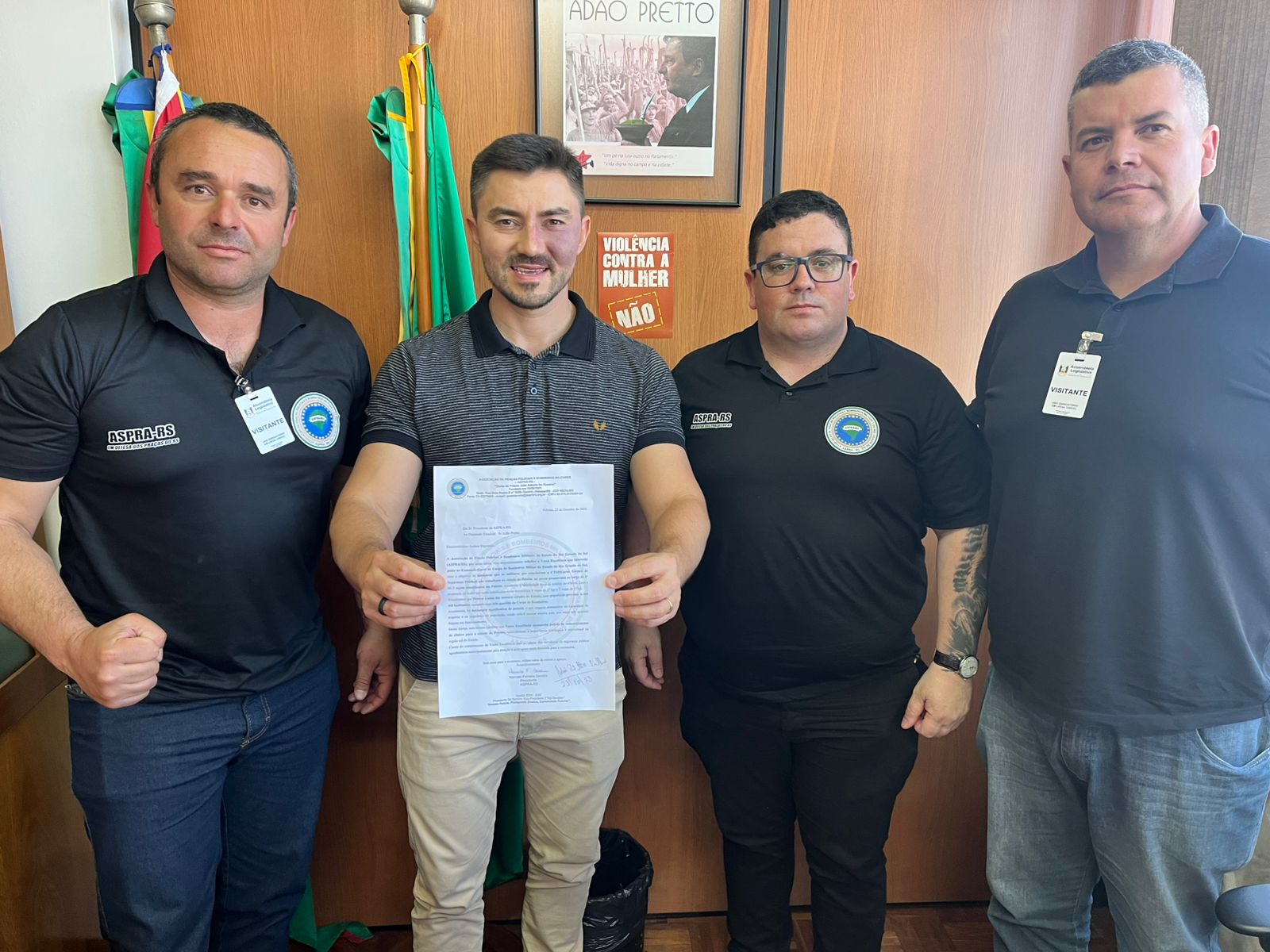 A ASPRA-RS ainda se reuniu com o deputado estadual Adão Pretto, levando uma demanda importante dos bombeiros militares e reforçando o diálogo com o Parlamento gaúcho.